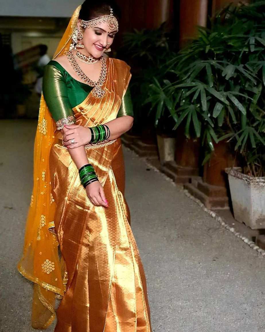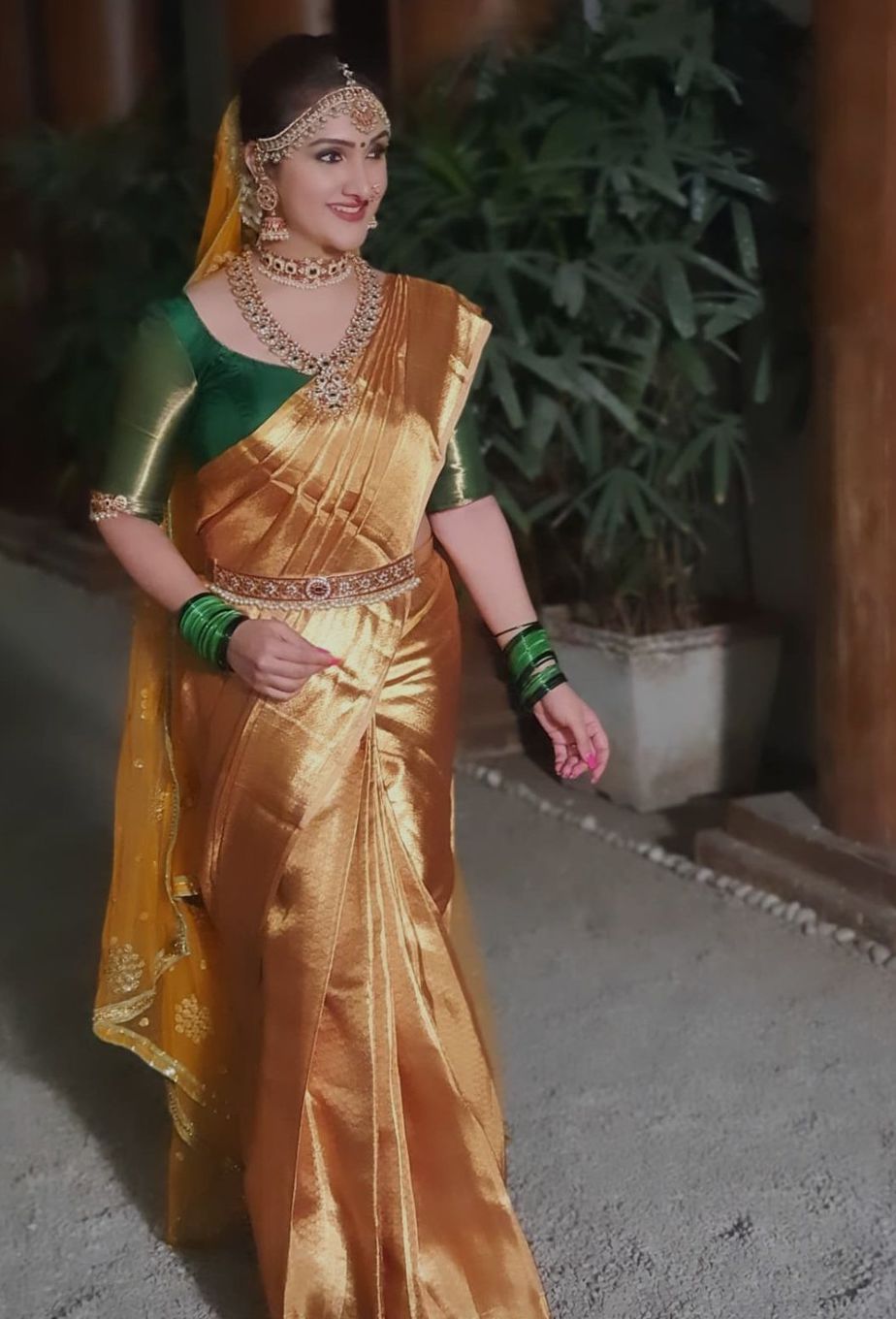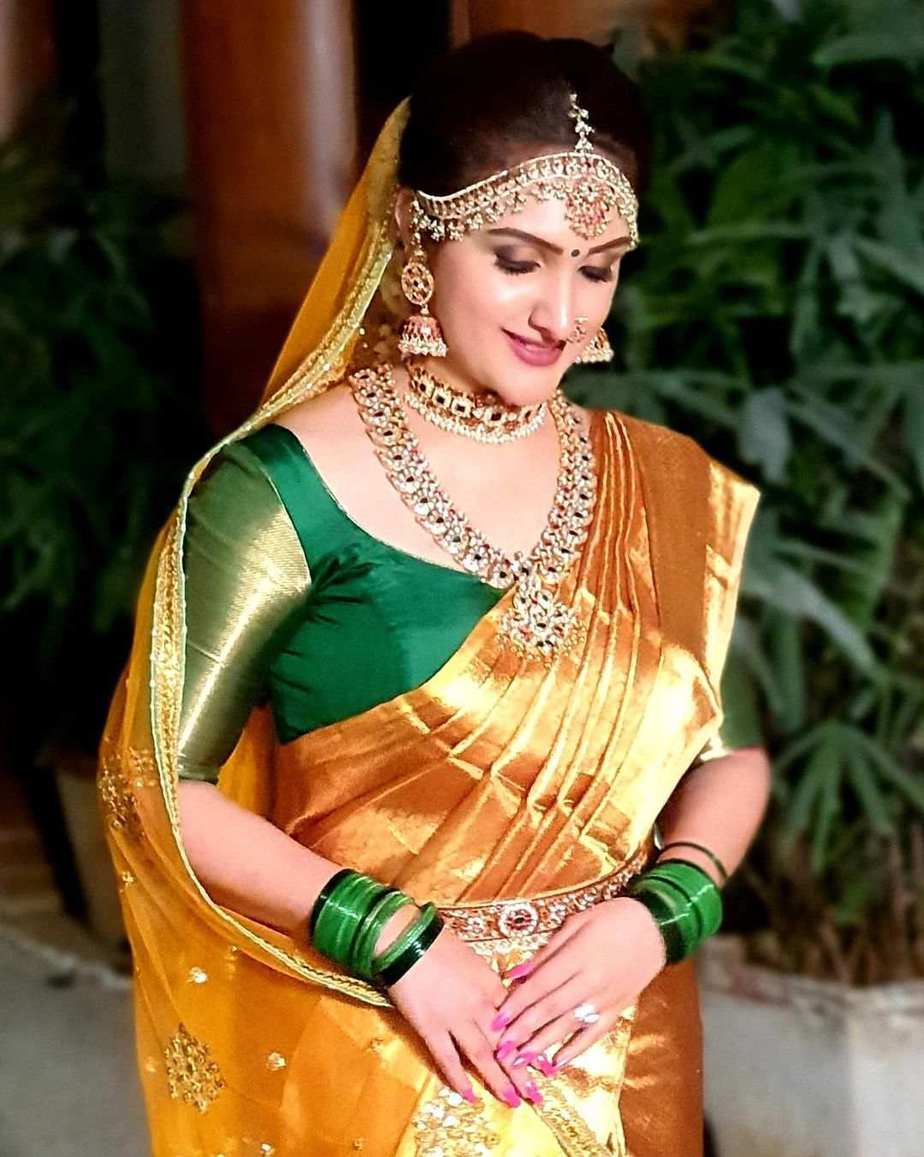 Actress Sridevi Vijaykumar proves how she is a timeless beauty each week. Her outfits on “Comedy Stars” are nothing however an affidavit to her spectacular ethnic fashion decisions. For the upcoming episode of the present, Sridevi seems as royal as a queen in a gold pattu saree with yellow ghungta by Mugdha Artwork Studio. Bookmark this one if you wish to have your individual queen second.
