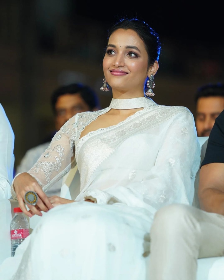 Srinidhi Shetty looks graceful in an ivory silk saree at “Cobra” audio launch! Celebrity Sarees
