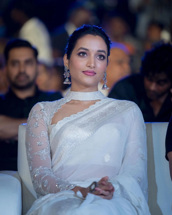 Srinidhi Shetty looks graceful in an ivory silk saree at “Cobra” audio launch!