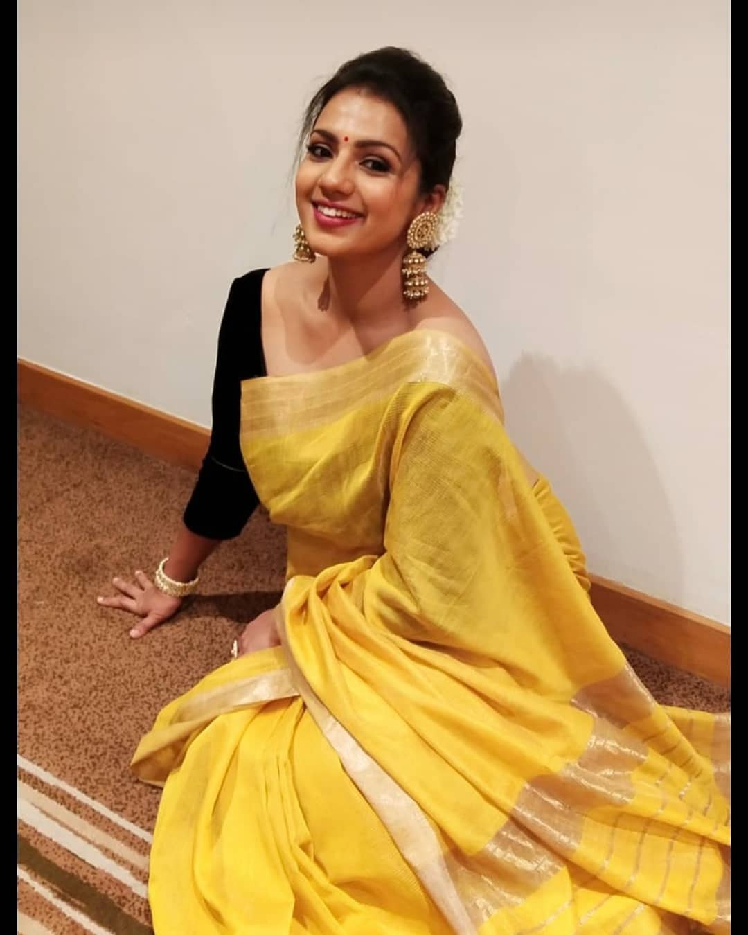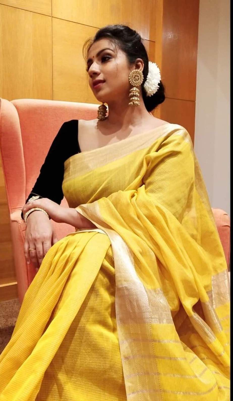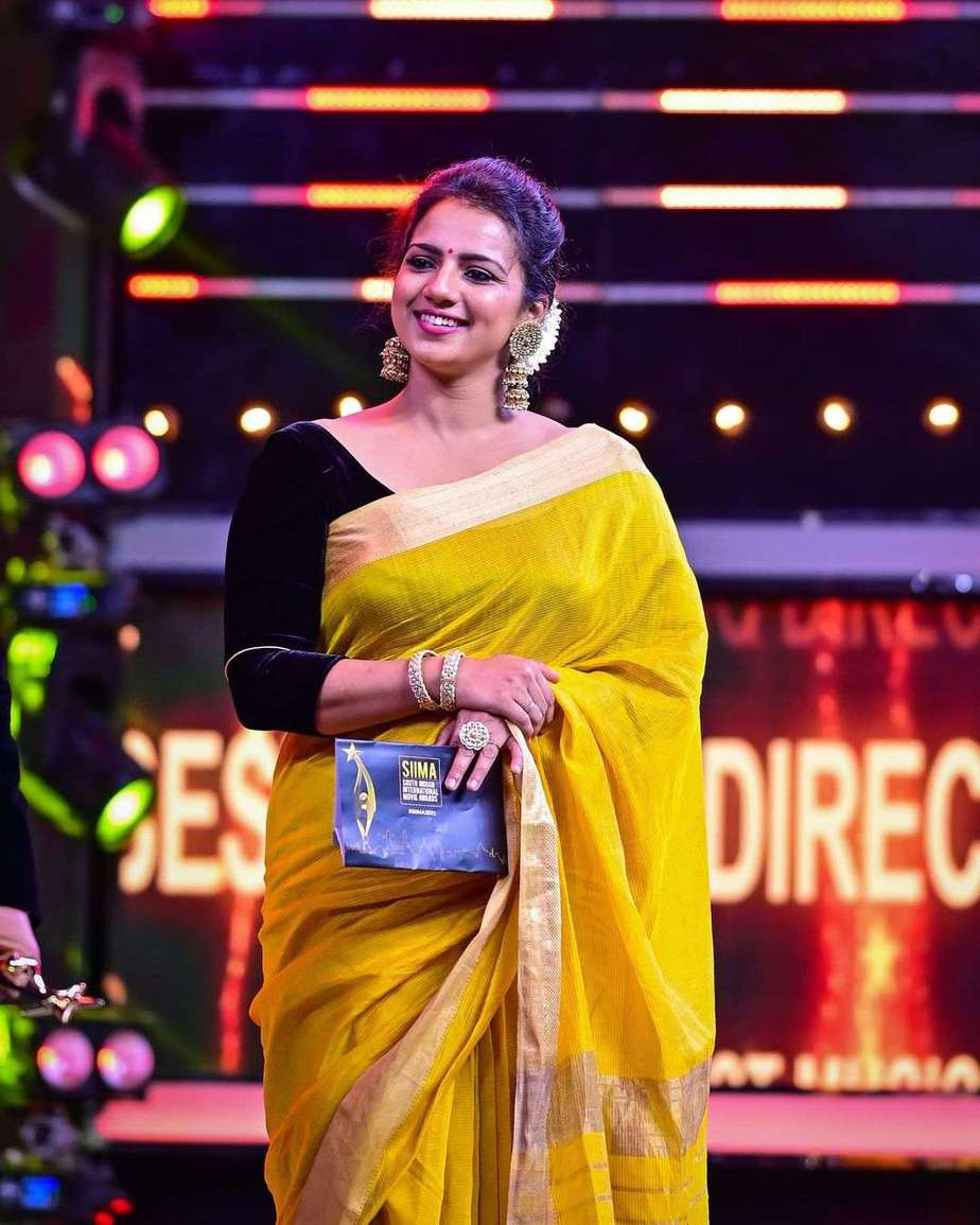 Actress Sruthi Hariharan definitely has managed to impress us all with her look at SIIMA 2021 day 1 but who knew she could even outdo herself! The beauty looked gorgeous in a yellow Maheshwari tissue saree by Sawenchi on SIIMA day 2!