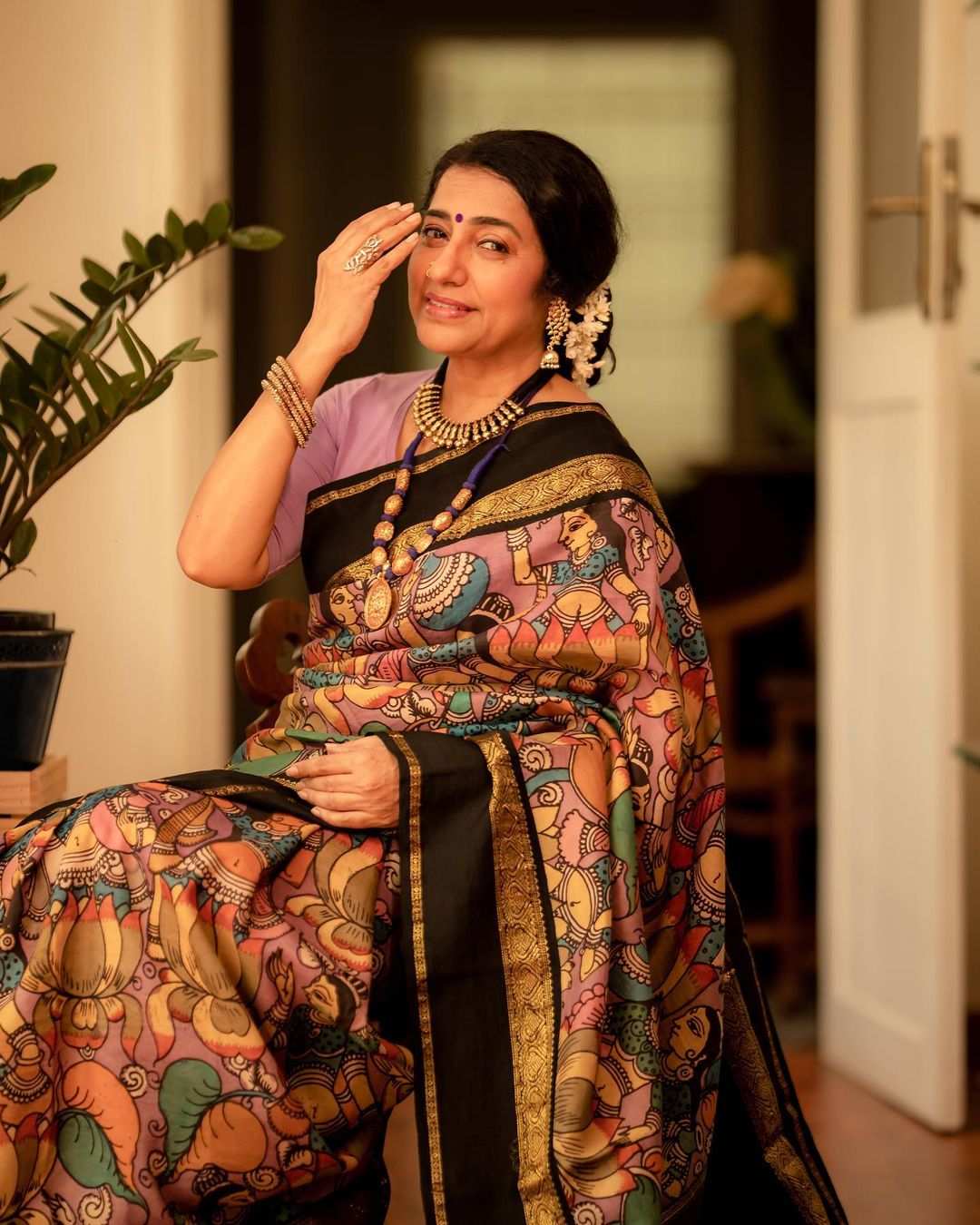 suhasini in a kalmkari saree by mayukha fine fabrics 1