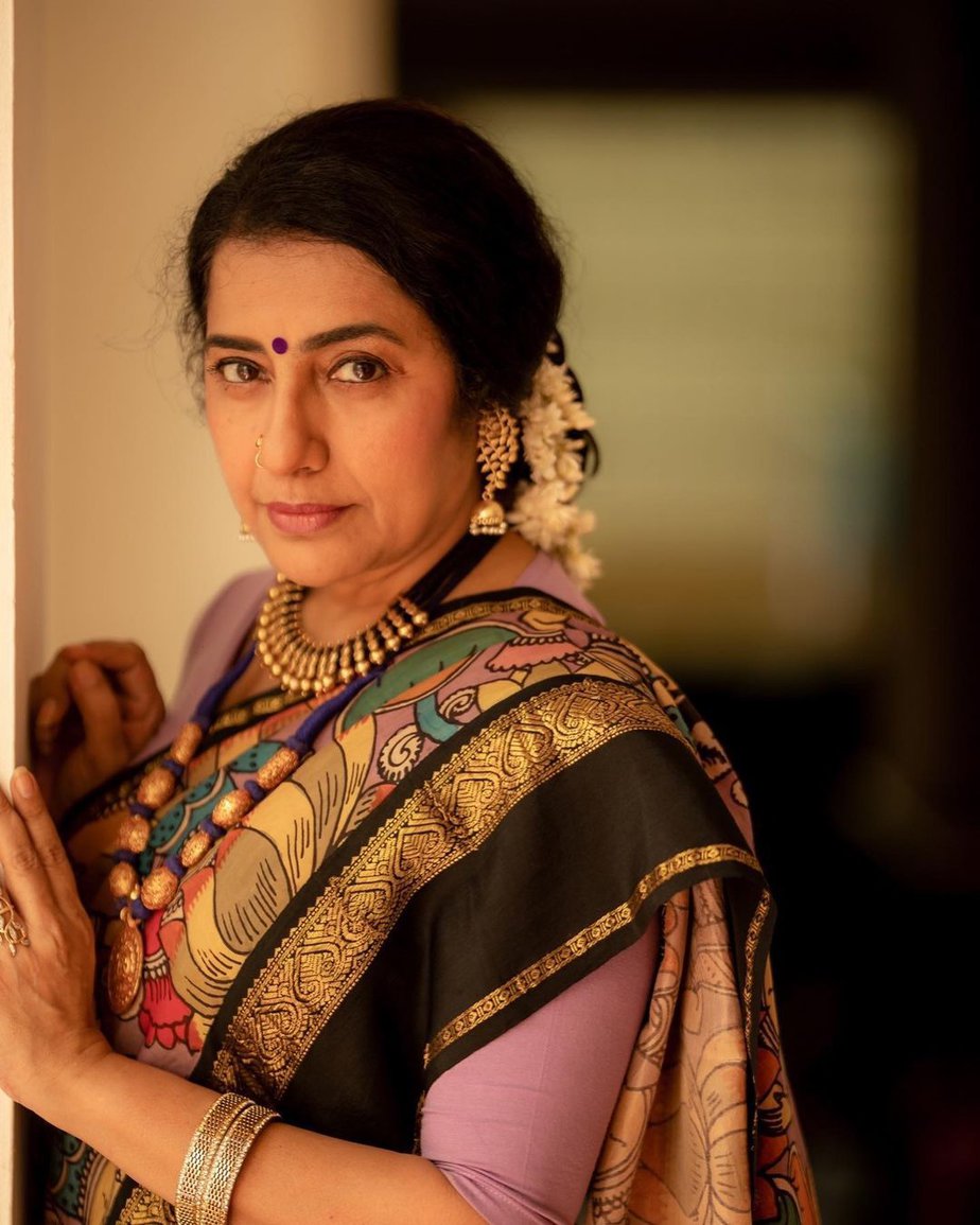 Suhasini Hasan exudes grandeur in a pink kalamkari kanchipuram saree!