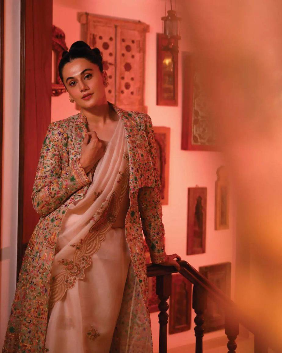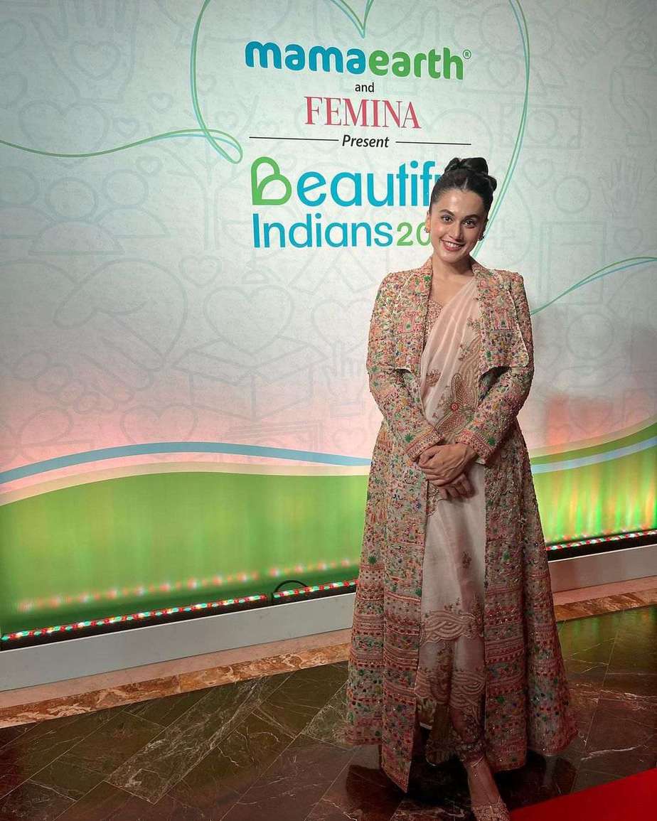 Actress Taapsee Pannu has been able to attain the stardom only a few can dream of. The beauty is popular all over India and has obtained a number of awards already. Last day she was presented with the Femina Trailblazing Artist of the year’22. For the event, she wore an ivory saree set designed by Saroj Jalan.