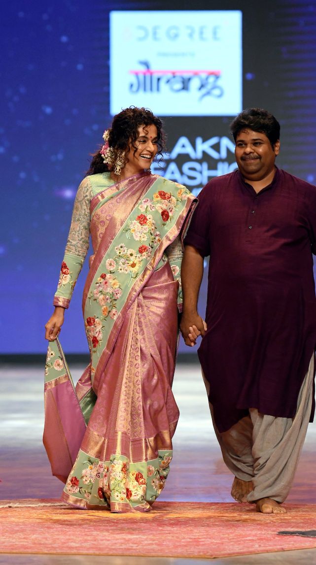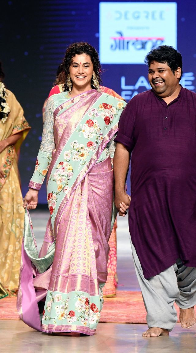 This year’s Lakme Fashion show was all about sustainable clothing and lauding our indigenous artisans. Designer Gaurang unveiled his latest collection named Chand that paints our rich culture onto handwoven fabrics. Actress Taapsee Pannu who was the show stopper stunned us in a pink pattu saree from his collection. Appease the pattu saree lover in you by wearing this one at your next formal party!