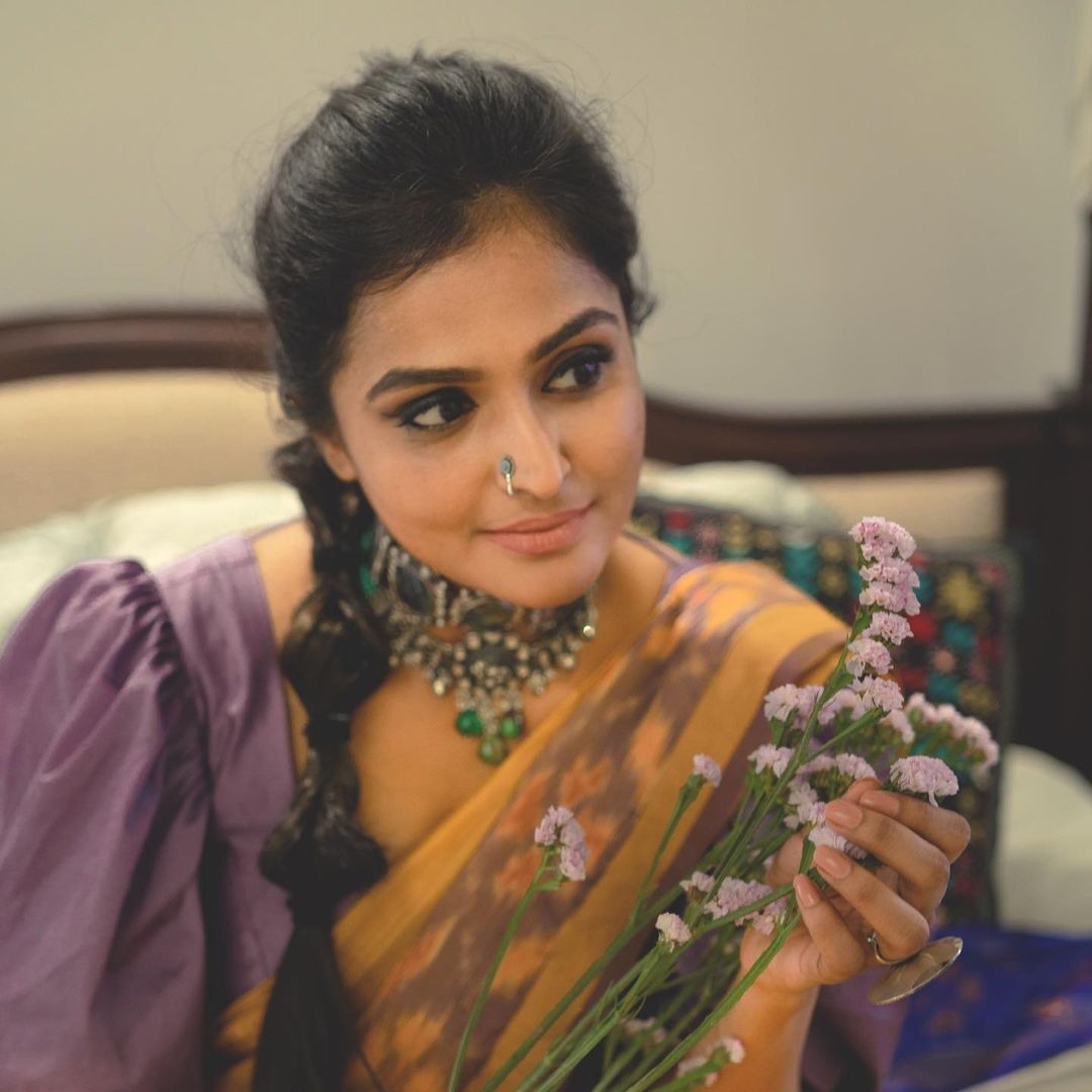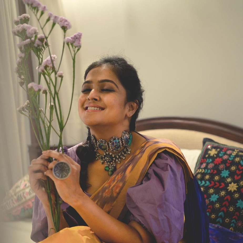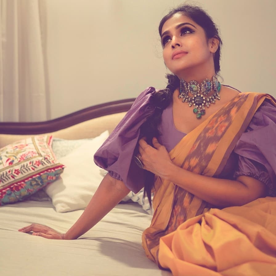 Last day actress Ramya Nambessan had managed to create a wave among her fans with her cotton saree and fancy blouse pairing. While are yet to recover from the way she nailed it, Ramya seems unstoppable as she is back with another look. This time the actress chose to wear a yellow sambalpuri saree with a stylish blouse by Devraagh.