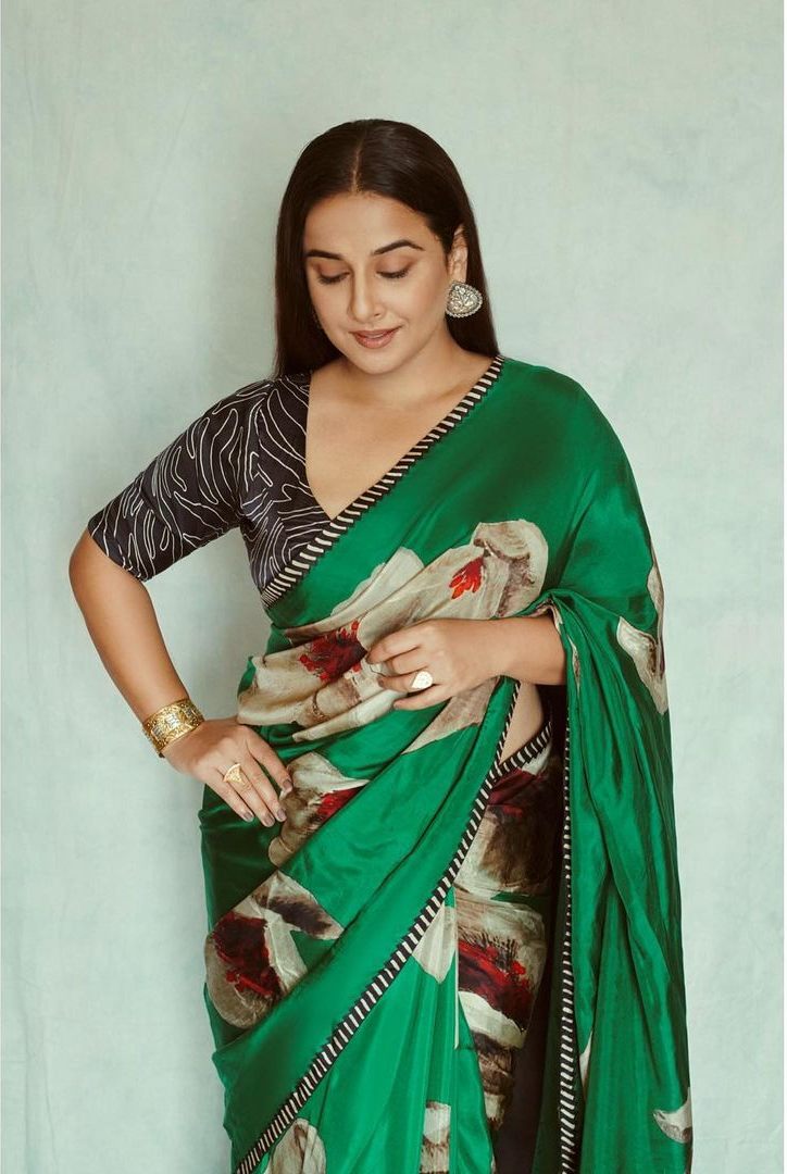 Every day has a new set of challenges and surprises in store for us. So, while we have seen actress Vidya Balan wear a lot of pretty sarees for the promotions of “Sherni” we are still excited when she unveils a new look on the next day. In the latest slew of photos, Vidya is seen channelling the power of green in a floral saree by Yam India.
