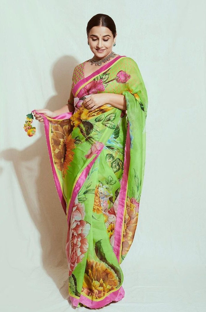 Floral sarees are everyone’s favourites and none can blame anyone for liking them. Why would anyone not want to capture the beauty of the spring and the vibrance of colours on their outfit after all? Our favourite celebrities are no exception. Actress Vidya Balan who is an ardent saree lover has also come about to admit how much she loves flower printed drapes. In fact, she draped another gorgeous number by Torani for the promotions of her movie, “Sherni.”